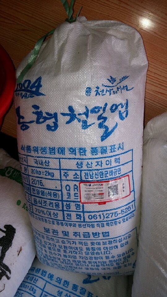 20kg 천일염가격 1만3000원, 택배는 우체국택배만
