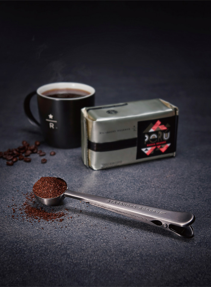 스타벅스가 11월 5일까지 가을 한정으로 선보이는 새로운 리저브 원두는 '페루 바구아 그란데'와 '발리 빈티지 클라식', '콜롬비아 버번 아마리요' 3종이며, 구매 시 제공하는 '리저브 커피 스쿱'은 원두 패키지를 밀봉할 수 있도록 손잡이가 집게 형태로 제작되었다.