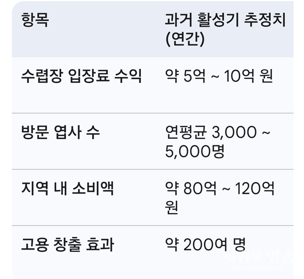 수렵장 폐쇄는 지역 경제에 수치로 증명되는 타격을 주고 있다. 과거 제주 수렵장이 활성화되었을 당시의 통계에 따르면 표와 같은 경제적 효과가 발생했었다.