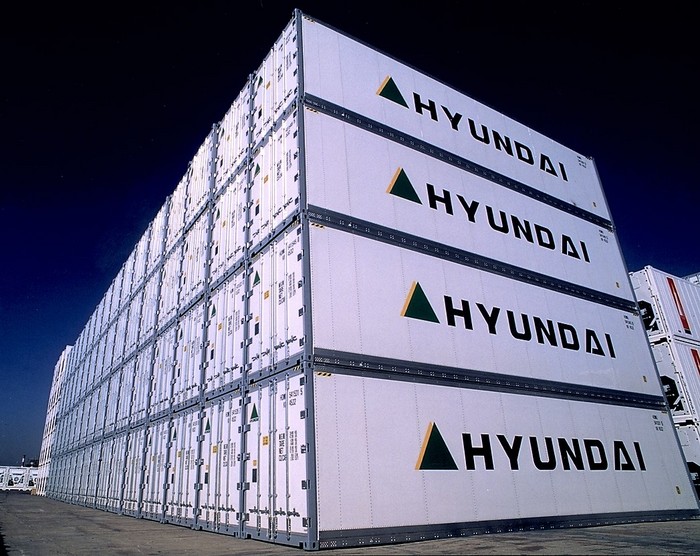 ▲현대상선이 냉동 컨테이너 서비스 개선을 위해 IoT 기술을 도입, 21일부터 시험 운영에 들어간다. 사진은 현대상선 냉동 컨테이너 |