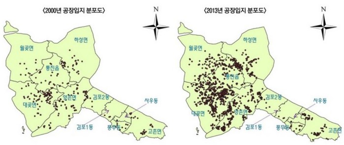 ▲거물대리 주물공장 등 토양, 대기, 수질 오염을 유발 공장이 허술한 법 때문에 늘어나 결국 막대한 인체적 피해까지 초래했다. |