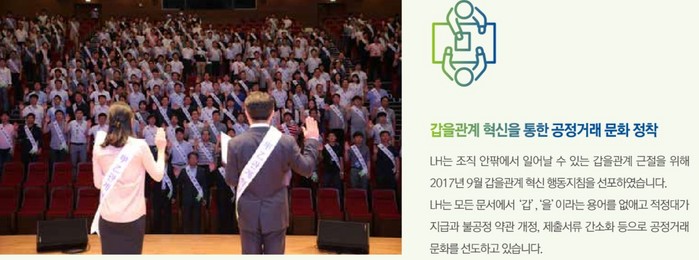 | ▲지속경영보고서 발췌, LH공사사 공개한 공정거래 문화 정착과 달리 현실은 다른 형태의 경영으로 펴고 있다. |