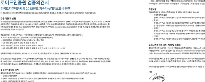 | ▲지속경영보고서를 낸 본래의 취지에 다르게 보고서 자체 인증에 문제가 없다는 식으로 일반에 공개하고 있다. |