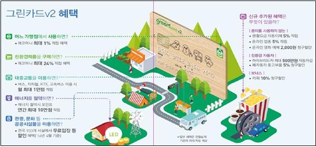 우리나라는 2011년 7월 그린카드가 처음 출시됐고 지난해 말 기준으로 1508만좌 이상의 그린카드가 발급돼 생활밀착형 온실가스 감축의 대표적인 제도로 자리 잡았다.