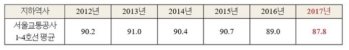 | ▲지하철 역사 미세먼지 오염 연도별 현황 |