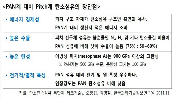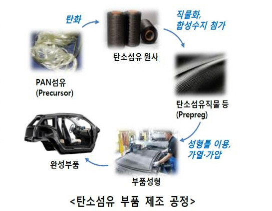 현재 PAN, 레이온 등 화학섬유를 수차례 높은 온도로 가열해 흑연화 과정을 거친 후, 에폭시 수지 등 플라스틱을 첨가해 견고한 구조 완성시키는 단계까지 왔다.