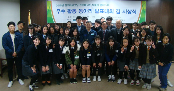 [환경데일리 김영민 기자] 세계적인 실리콘 및 솔루션 선도기업인 한국다우코닝이 주최하고 (사)한국환경교육협회가 주관하는 ‘2015 그린에너지 클럽 콘테스트’ 시상식이 13일 한국다우코닝 충북 진천공장에서 열렸다.