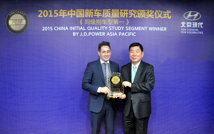 현대기아차는 지난달 30일 시장조사업체 제이디파워(J.D.Power)가 발표한 ‘2015 중국 신차품질조사(IQS, Initial Quality Study)’에서 전체 46개 일반브랜드 가운데 현대자동차가 1위, 기아자동차가 5위를 기록하며 양사 모두 최상위권에 진입하는 동시에 총 11개 차급 중 5개 차급에서 1위에 오르는 성과를 달성했다고 밝혔다.