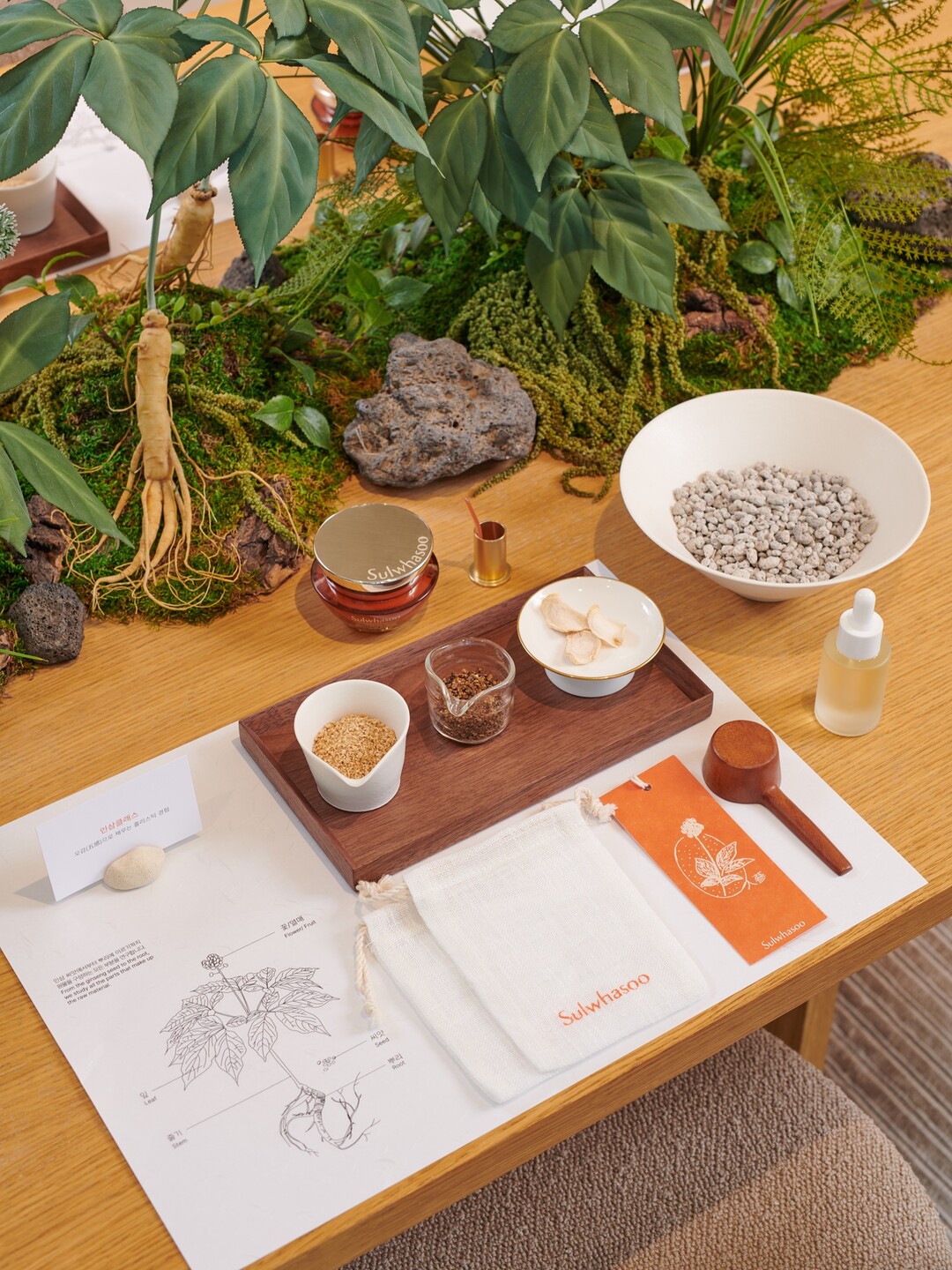 인삼 입욕제 만들기 체험은 설화수가 독자 개발한 '뷰티 사포닌' 성분과 브랜드의 대표 성분인 '자음단'을 활용해 자신만의 인삼 입욕제를 제작할 수 있다. 이를 통해 고객은 인삼의 효능을 피부로 느끼며 설화수의 헤리티지 원료인 인삼에 대해 깊이 이해할 수 있다. 또한 체험 후에는 인삼 티와 한국 전통 티푸드가 제공되는 다과 시간을 통해 힐링도 누릴 수 있다.
