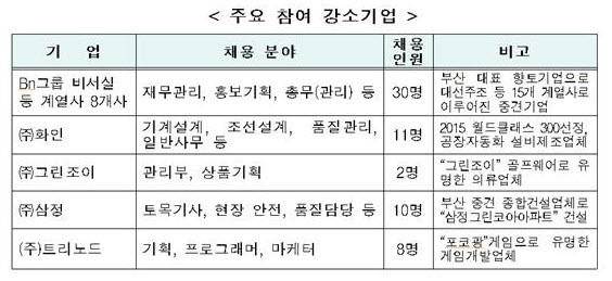 지역 우량 강소기업 51개사가 참여 사무직, 해외영업직, 연구개발직, 프로그래머, 토목기사 등 다양한 직종에 380여명을 채용한다.