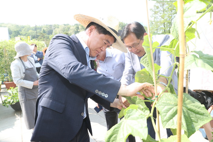 박준희 구청장은 제8회 서울 도시농업박람회 관악구에서 개최돼 영광"이라고 환영사를 밝혔다. 박 구청장은 박람회장 부스 순회하며 친환경 도시농법으로 자란 수확물 직접 보고 느끼며 체험했다.