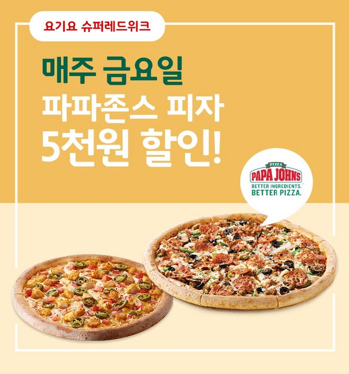 파파존스를 가벼운 가격에 즐길 수 있는 '슈퍼레드위크'는 요기요의 인기이벤트로 매일 특정 프랜차이즈를 선정해 주문 시마다 3000원에서 5000원의 할인혜택을 제공하고 있다.