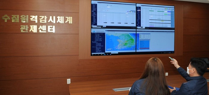 상황실서 수질측정기기 이상 감지 및 예방 확인
