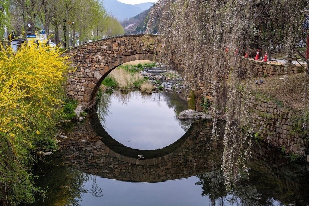 오염됐던 하천의 물이 맑아지니 개나리와 벚꽃이 하천 주변서 활짝 피었다