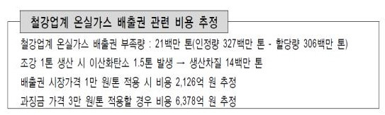 반면 철강업계는 산업경쟁력을 고려하지 않은 배출권거래제로 인해 발생하는 원가상승 및 생산 효율성 저해 등 문제 해결을 위해 CO2 규제 완화도 정부측에 요청한 상태다.