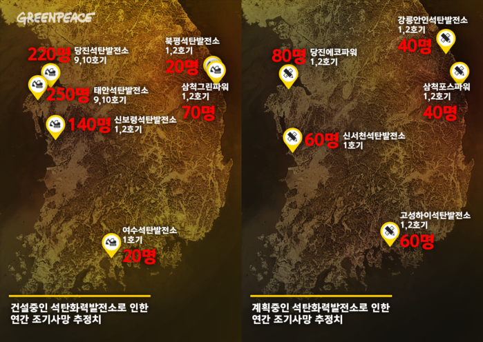 그린피스는 3월 3일, '살인면허를 취소하라'석탄 사용 줄이기 캠페인을 새롭게 시작하면서, 국내에서 건설, 계획 중인 석탄화력발전소의 건강피해를 발표했다.
