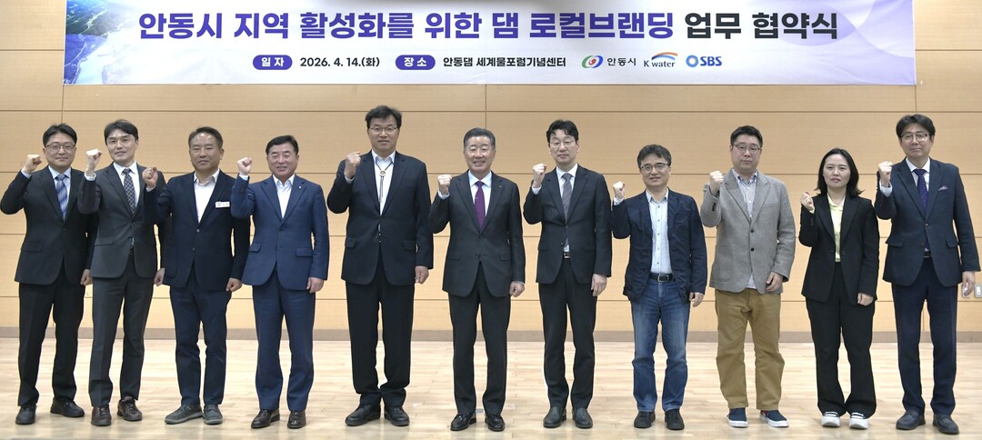 K-water 한국수자원공사(사장 윤석대)는 14일 안동 세계물포럼기념센터에서 안동시 지역 활성화를 위한 댐 로컬브랜딩 업무협약을 체결했다.