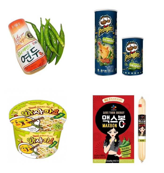 청양고추보다 매운맛이 더 강한 멕시코 고추, 할라피뇨(스페인어 발음으로는 할라페뇨)를 이용한 제품도 다양하게 출시되고 있다.