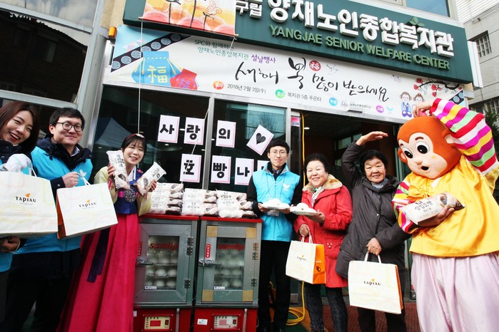 SPC 양재사옥 임직원들은 이날 양재노인복지관에서 어르신 400여분에게 떡국을 나눠드리고, 삼립식품 호빵과 롤케이크 선물을 전달하는 등 봉사활동을 진행했다.