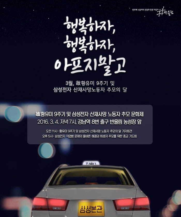 올해는 2016년 3월 한 달을 '고 황유미 9주기 및 삼성전자 산재사망 노동자 추모의 달'로 정했다.