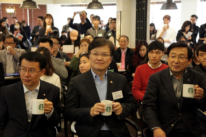 [환경데일리 김영민 기자] ㈜스타벅스커피 코리아(대표 이석구)가 29일 미래창조과학부(장관 최양희), 대통령직속 청년위원회(위원장 박용호)와 함께하는 창업카페 프로그램의 활성화를 위한 발대식을 오후 2시부터 스타벅스 명동길점에서 가졌다.