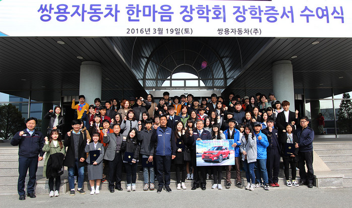[환경데일리 김영민 기자] 쌍용자동차(대표이사 최종식)는 소외계층을 지원하고 미래인재 육성 및 지역사회 공헌 활동의 일환으로 제5회 쌍용자동차 한마음 장학회 장학증서 수여식을 개최했다고 20일 밝혔다.